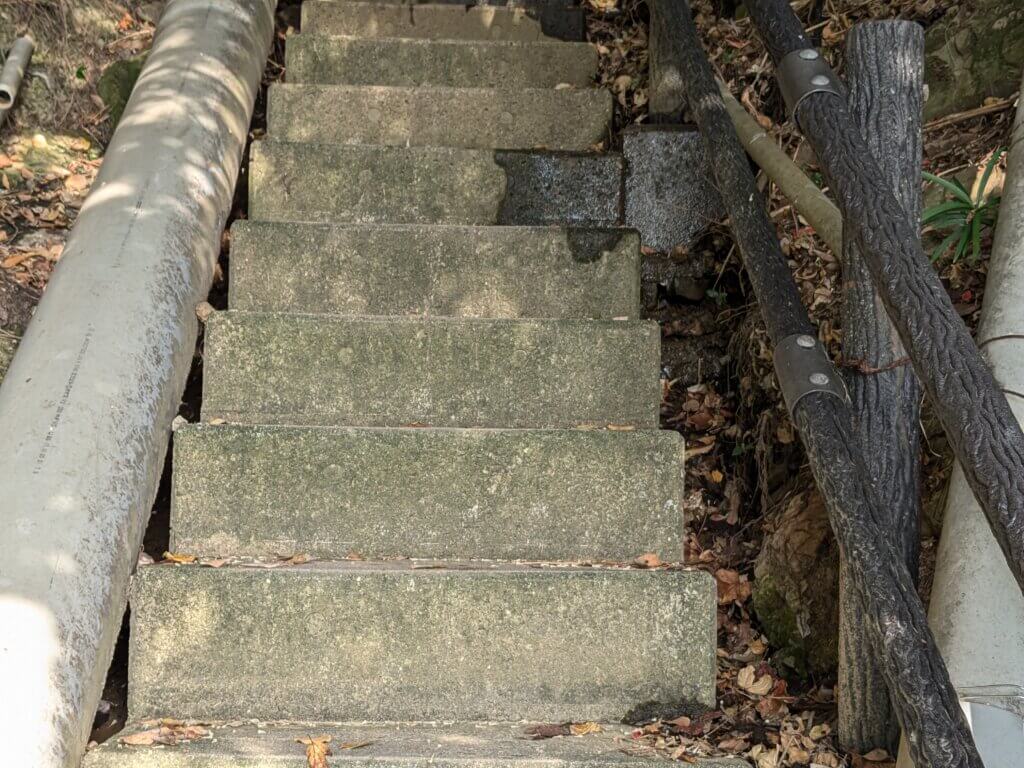 ひっそりと隠れるように、海から高台に続く階段があります。通称「天国の階段」。両側に草が茂るような階段は、上り始めるのに少し勇気がいります。